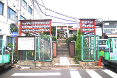当社は、天正18年(1590年)に、徳川家康公の江戸入府とともに移住してきた摂津国の佃村・大和田村の漁師たちが、豊漁祈願、航海安全、子孫繁栄を祈願して大市場交易神を祀ったことに始まるとされる。現在は、神田神社内の境内社、水神社の遥拝所として築地市場内に建立されている。 |
